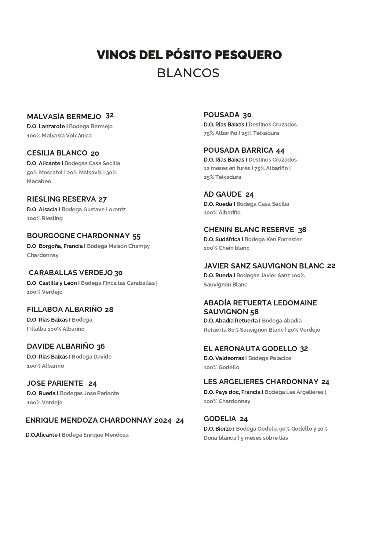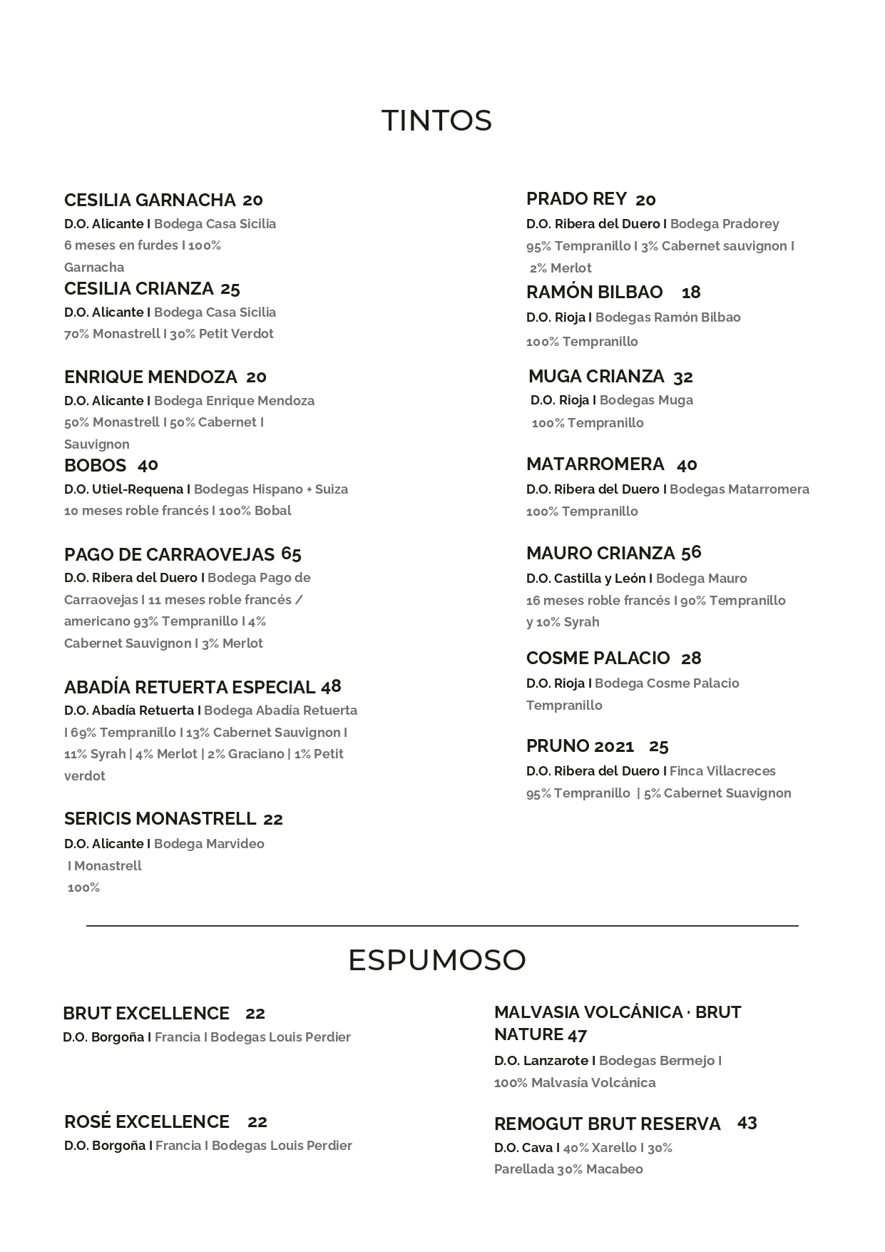 Carta de Vinos